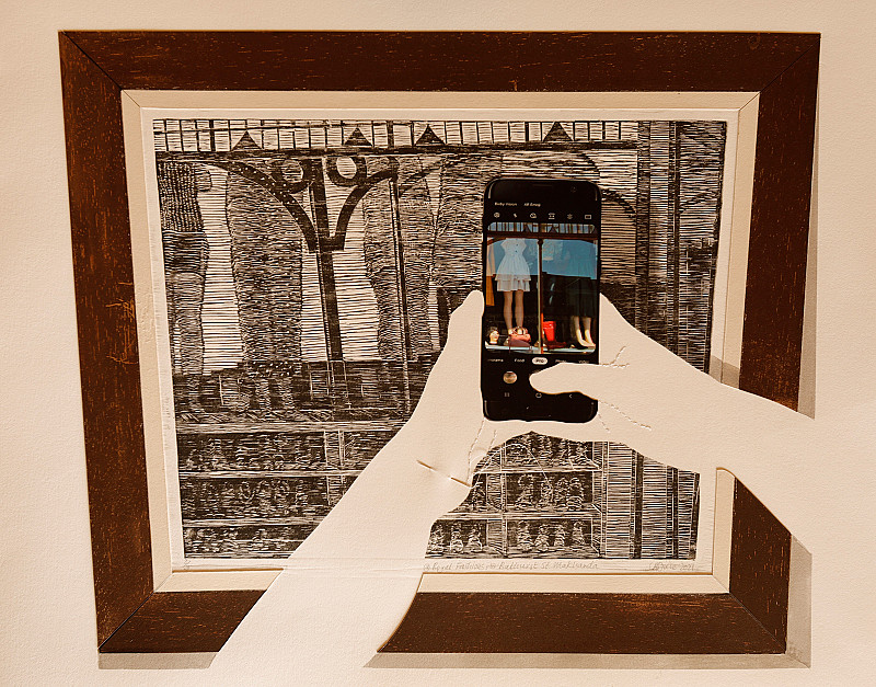 , Christine Dixie , Wooscut, collage, needle and thread