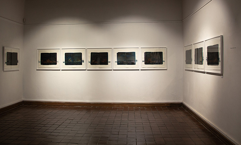 A golden thread traces its way across the pages of Michel Foucault’s The Order of Things. This broken line represents the equator. Below the ‘equator’ in the southern hemisphere sail three golden ships what traverse a ‘sea’ made from an embossed bandage.