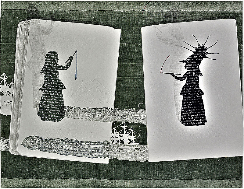 Blueprint for the DisOrder of Things, Trade-Off: A spectacle, Motionless, Christine Dixie , Monotype with embossing and watercolor