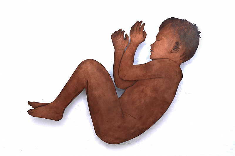 The title 'Blind' in this work refers to the psychological blindness of the father in the sacrificial narrative of the aquedah.