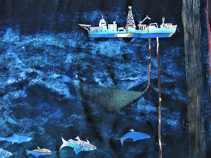 , Christine Dixie , Collage, sewing, transfer and stencil on voile