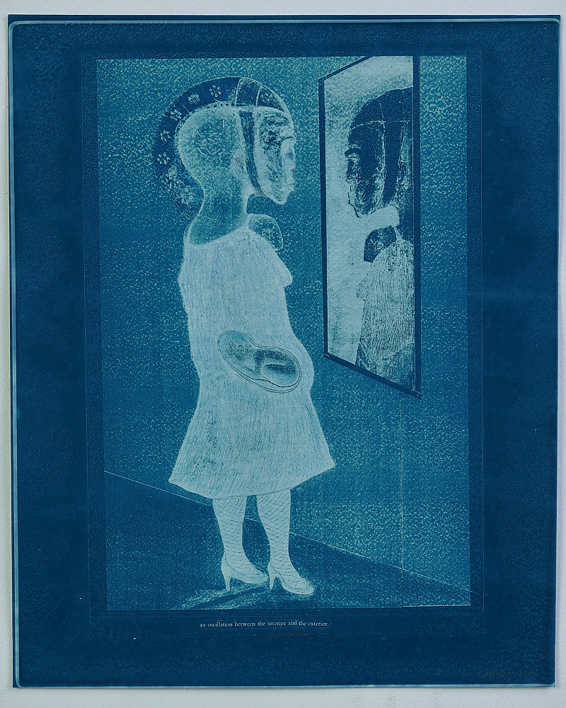 in her belly lies a baby, yet as she gazes at herself in the mirror a demure widows’