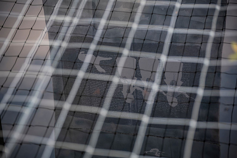 , Christine Dixie , Veil with digital print and spray paint