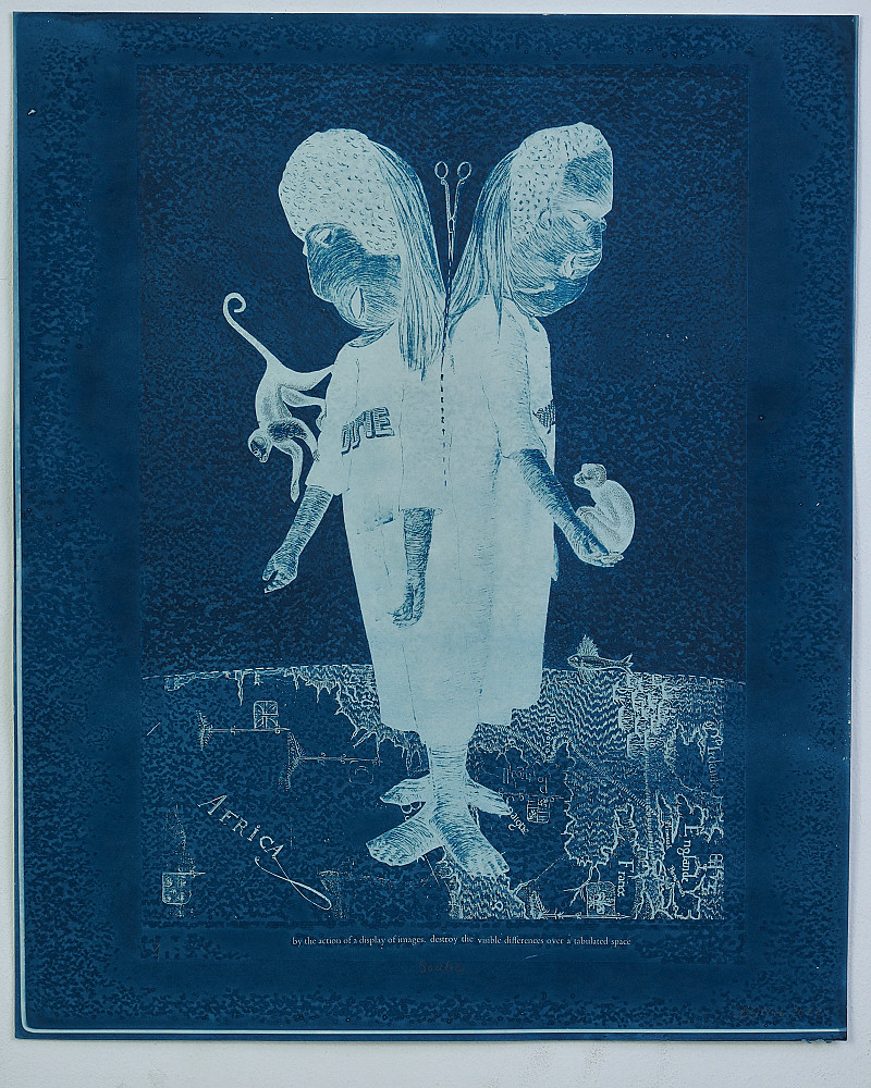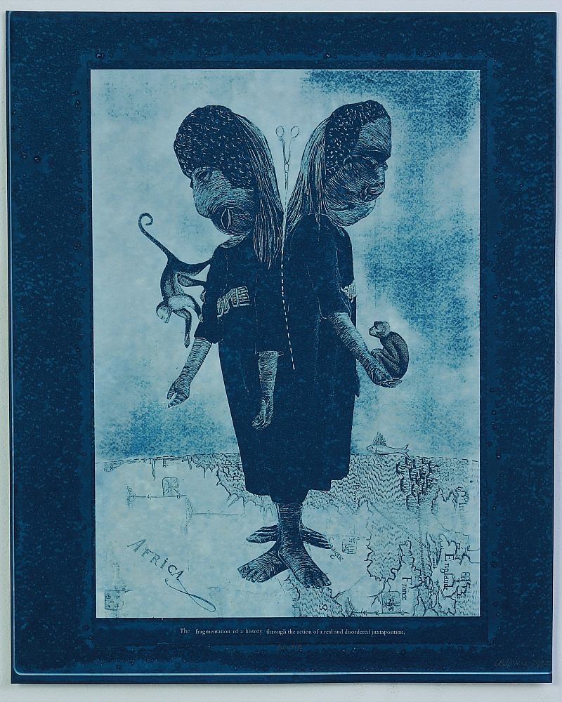 backwards and forwards, she has two sets of feet, one set points to Europe and the other Africa. Her/his
