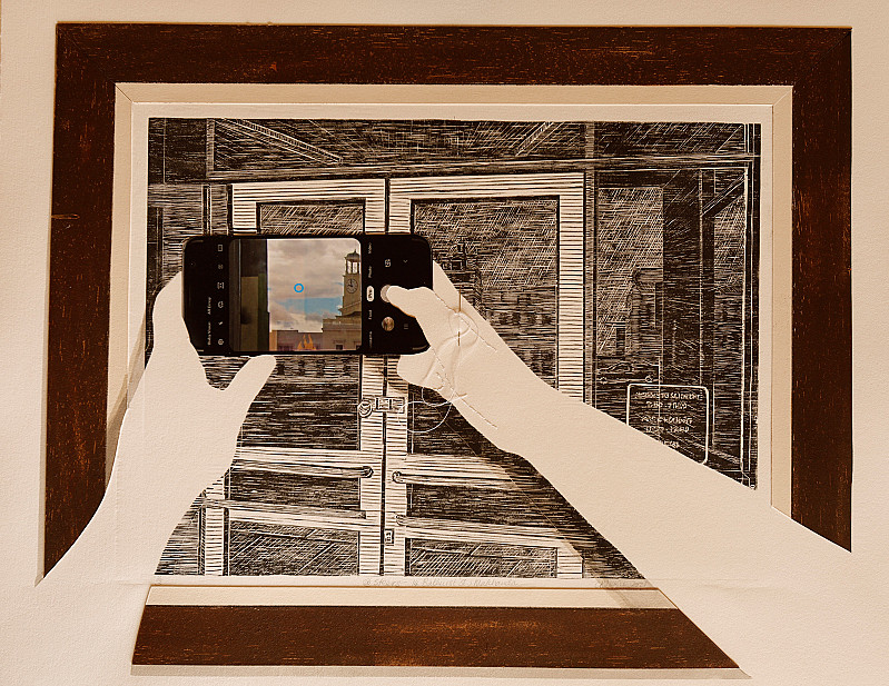 keeping watch on the local population. The woodcut imitates an ‘engraving’, the